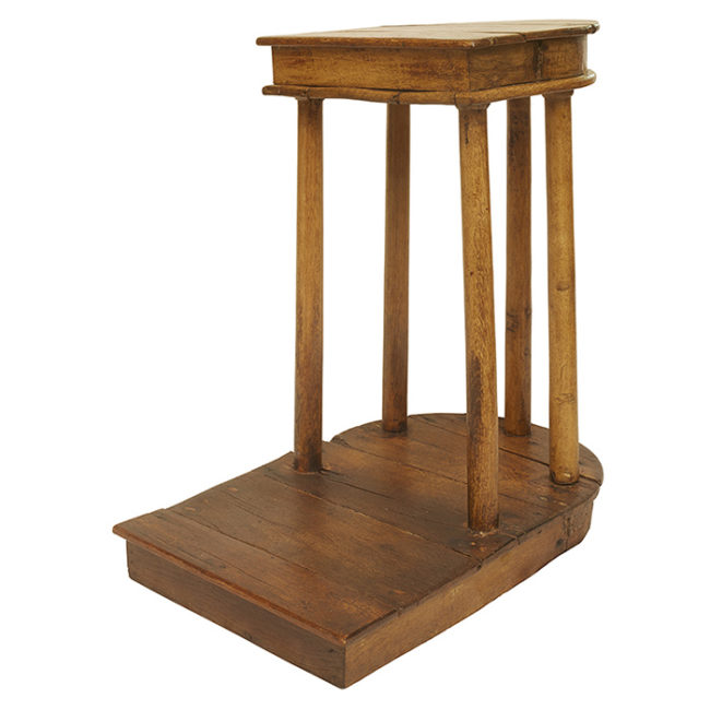 Paire de tabourets de chantre Paire de tabourets de chantre à cinq pieds, de forme semi-circulaire Bois de chêne Deuxième moitié XVIème siècle Hauteur : 67,5 cm Largeur : 41,2 cm Profondeur : 63 ,5 cm Restaurations d’usage Ces tabourets de chantre ou d’enfants de chœur présentent le plus souvent une base qui servait de…