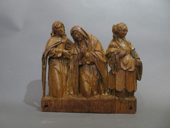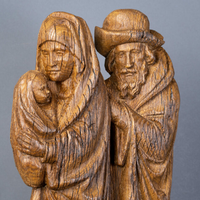 Sainte Famille d’une Fuite en Egypte sainte Famille durant la Fuite en Egypte Bois de chêne XVIIème siècle Flandres Hauteur : 52,5 cm Prix sur demandeHoly Family Holy Family Seventeenth century Flanders Height : 52,5 cm Price on request