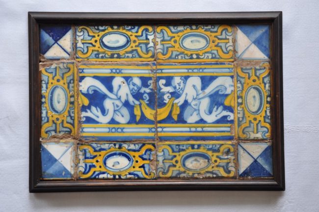 Panneau Talavera Ensemble de carreaux formant un décor de deux chérubins déployant un tissu drapé. Faïence émaillée Vers 1600 Espagne, Talavera de la Reina Dimensions :40,5 x 27,5 cm Accidents Prix sur demandeTalavera tiles Tile panel Tin-glazed earthenware Circa 1600 Spain, Talavera de la Reina Dimensions : 40,5 x 27,5 cm Some parts eroded These…