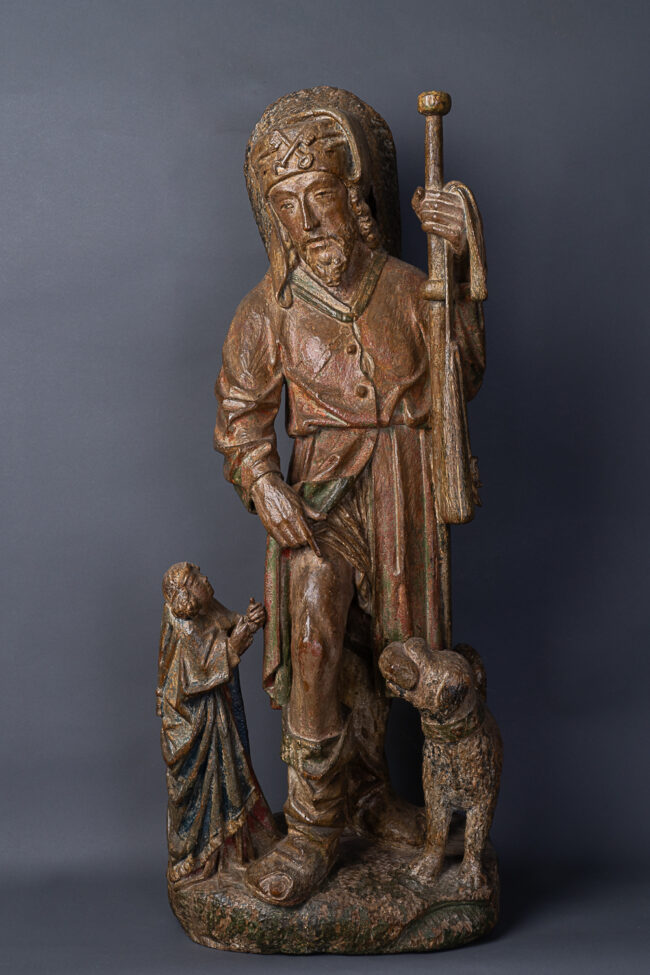 Saint Roch Saint Roch, l’Ange et le chien Bois de chêne Fin du XVème siècle Flandres Polychromie d’origine Dimensions : 87 x 33 cm Prix sur demandeSaint Roch Saint Roch Oakwood End of the fifteenth century Flanders Original polychrome Dimensions : 87 x 33 cm Price on request